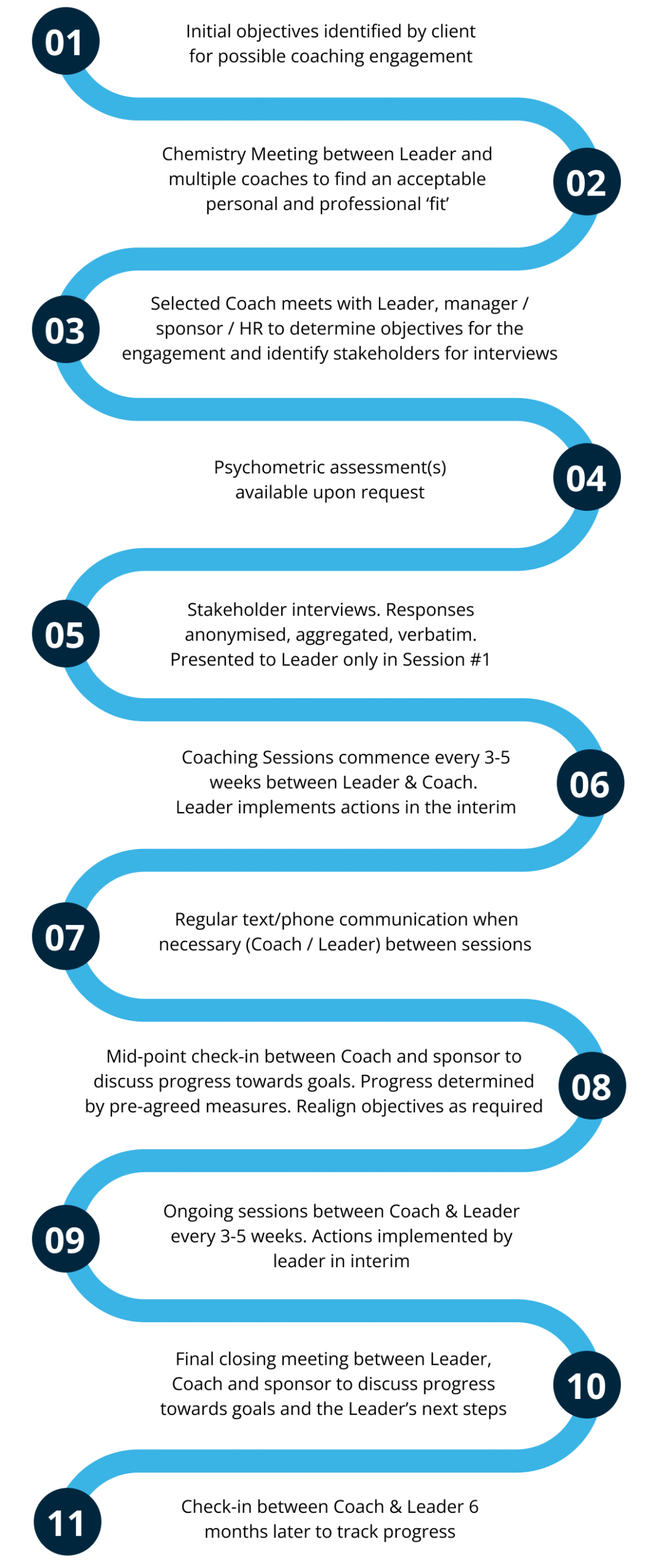This is because we only work with clients we believe will truly benefit from coaching, and we ensure coaching is tied to leadership behaviour change endorsed by their stakeholders.